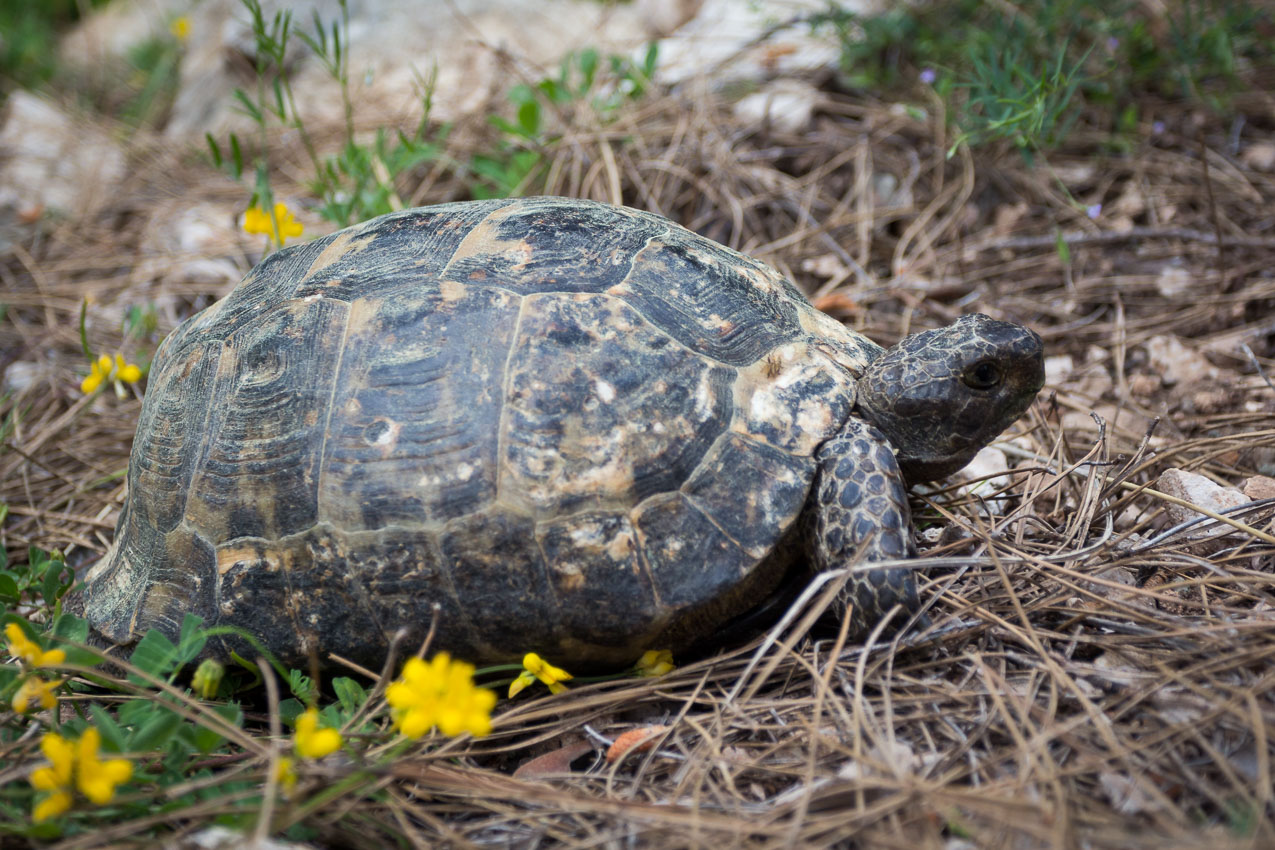 Cesta je prašná čas od času míjíme domky okolo. Lidé se tu nejspíše živí pěstováním pomerančů a granátových jablek. Potkáme starého dědu, který nám nabízí pomeranče. Kupujeme si každý aspoň dva a osvěžujeme se. Děda nás zve domů, ale s díky odmítáme, protože dnešní den bude asi nejnáročnější (1840 metrů nahoru a 311 metrů dolů). Později vidíme naši první želvu.
