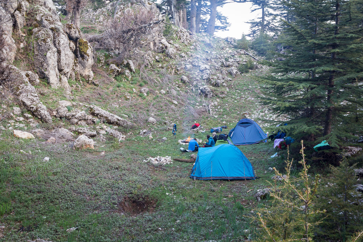 Konečně vidíme první cedry. Děláme často pauzy a už to chceme mít za sebou. Zase potkáváme mnoho ruskojazyčných turistů, kteří jdou s úsměvem na rtech opačným směrem než my. Nakonec dorazíme do sedla a hledáme místo na přespání. Najdeme dolinu krytou před větrem i s ohništěm. Gibon se jde podívat o kus dál, jestli tam není ještě lepší místo, ale vrací se, že není. Usídlíme se tedy v dolině. Rozděláváme oheň a stavíme stany. Michal s Niky se jdou projít a udělat nějaké fotky. Já půjdu později. Chci nejdříve postavit stan. A do západu slunce je ještě čas.